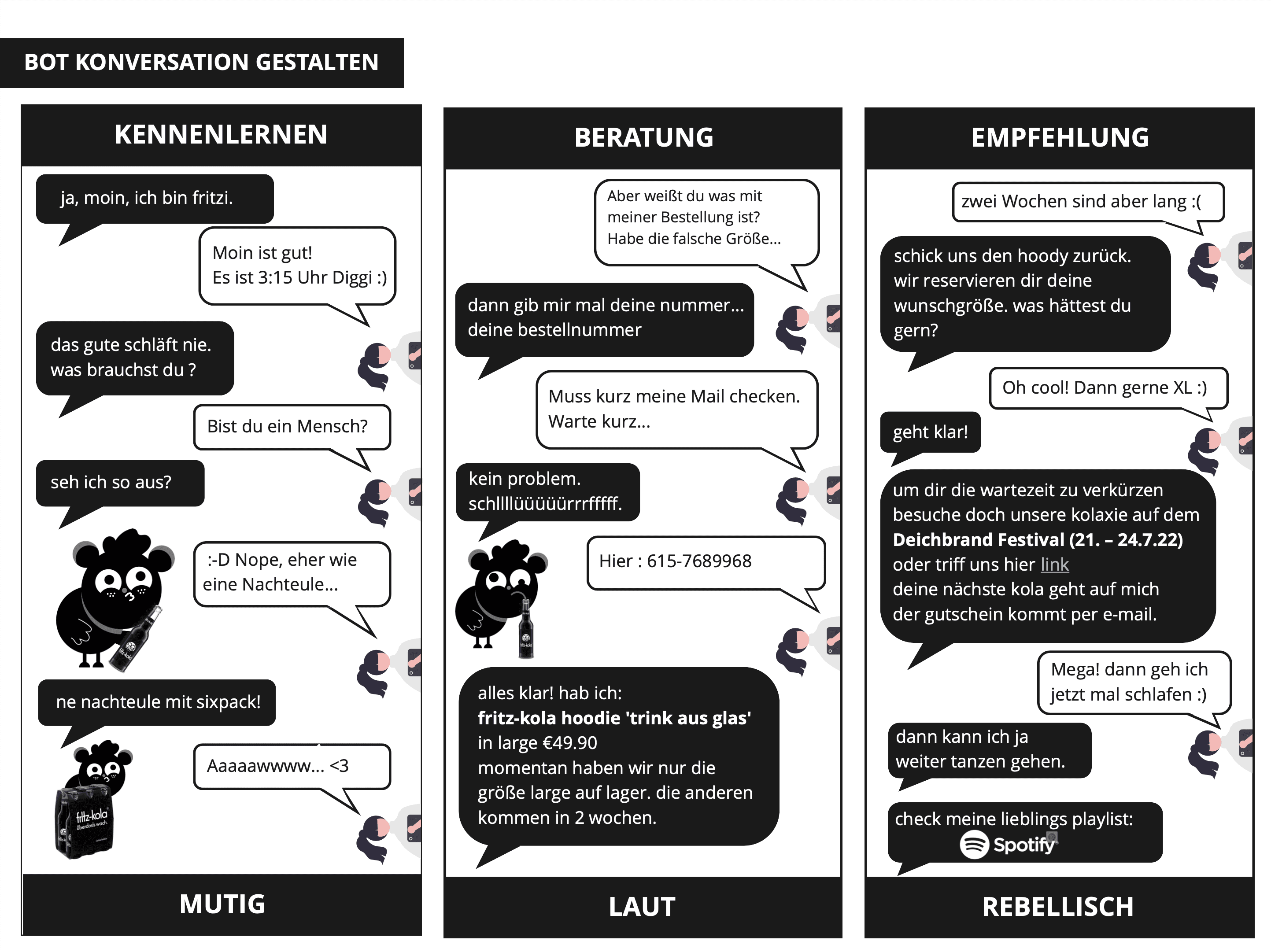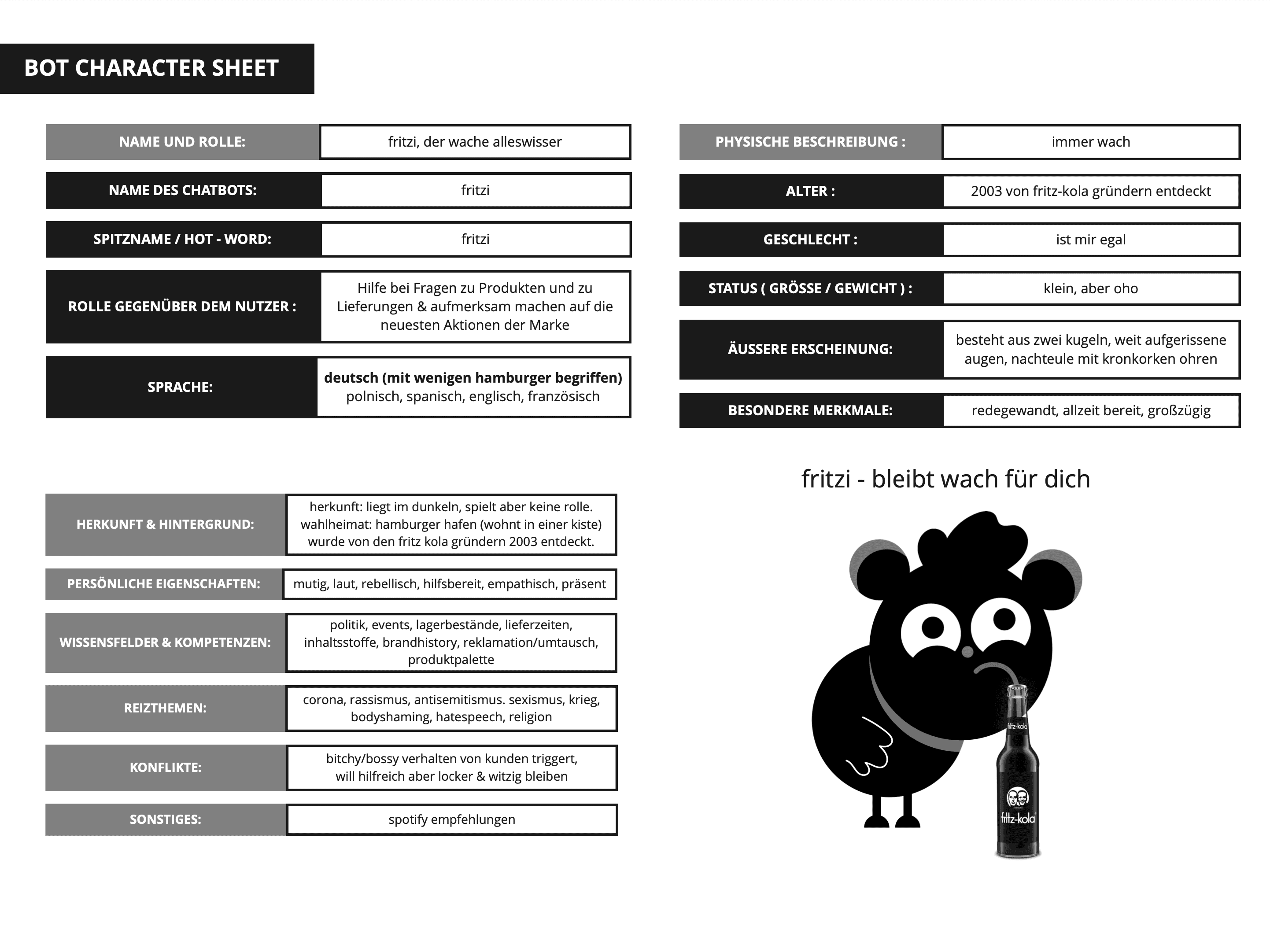 Konzeption: Charakter für Chatbot auf der Website der Fritz Cola entwickeln